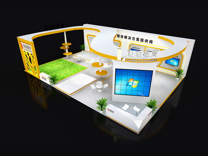 朗朗教育—教育展展覽設(shè)計朗朗教育—教育展展覽設(shè)計,契合朗朗LOGO元素,此外,整體展位設(shè)計布局開闊,整體以黃色為主,頂部曲線造型讓整個展臺更生動和靈性,也更具童趣,符合朗朗公司以“呵護幸福童年,奠基美好未來”為經(jīng)營宗旨。