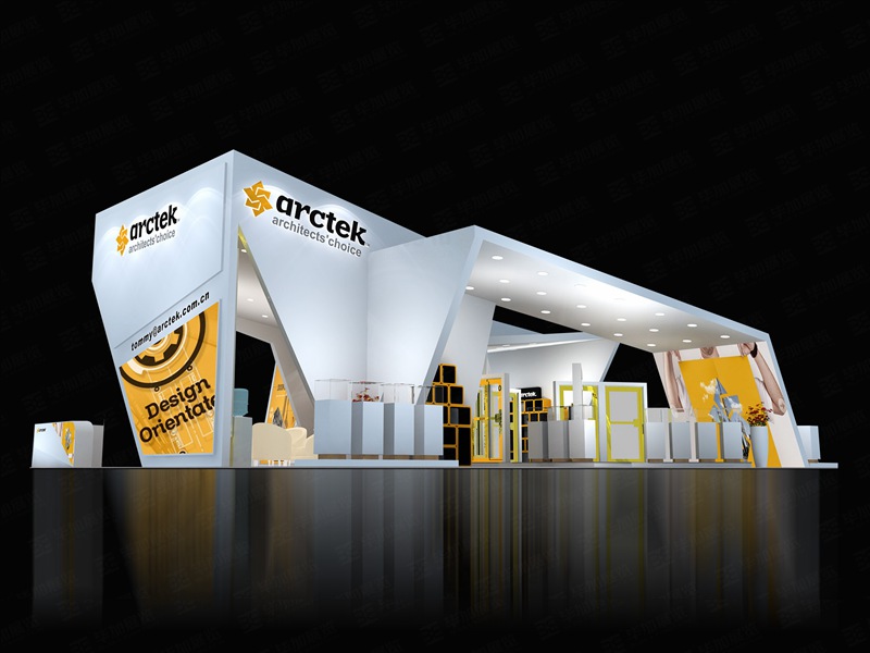 安吉—建材展展覽設(shè)計(jì)契合安吉品牌形象和產(chǎn)品特性,采用立體結(jié)構(gòu),再搭配燈具燈光的效果,襯托出展位抽象、超前的氛圍,突出一種個(gè)性、后現(xiàn)代的時(shí)尚品味。