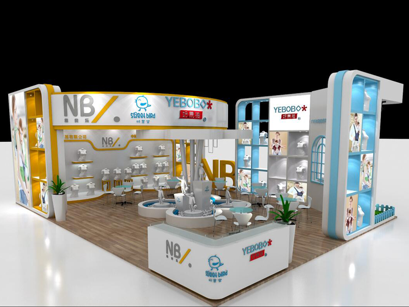 五羊—孕嬰展孕嬰展展臺搭建契合五羊品牌形象和產品特性,采用立體結構,再搭配燈具燈光的效果,襯托出展位絢麗、科技的氛圍,突出一種浪漫、硬朗的時尚品味。
