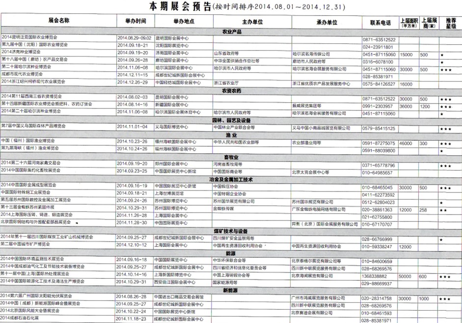 2014年8月至12月全國(guó)最全展覽會(huì)時(shí)間排期表