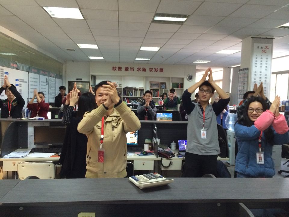 為了提高員工工作熱情,為了改善大家早上的工作狀態(tài)......今天,業(yè)務大廳突然熱鬧起來,易總帶領大家跳起了抓錢舞。雖然大家是第一次接觸,但是新穎的形式讓還處于冬困中的大家興奮起來!音樂響起,大家都不由自主舉起手,抬起腳跟著屏幕跳起來。相信畢加這樣一個歡樂的氛圍能夠持續(xù)下去,大家每天有一個最好的精神狀態(tài)做好手頭上的工作,以最好的面貌迎接客戶的到來,用最好的展臺設計方案和服務回報支持我們的客戶朋友。