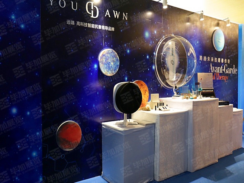 契合廣州筑合生物科技產業(yè)品牌形象和產品特性,采用立體結構,再搭配燈具燈光的效果,襯托出展位閑逸、簡潔的氛圍,突出一種躍動、艷麗的時尚品味。
