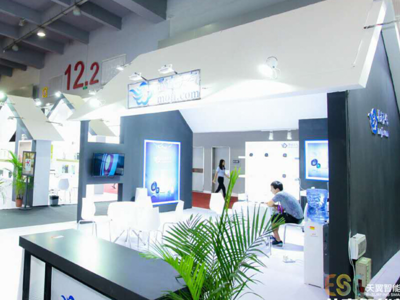 墨跡天氣的品牌形象和產(chǎn)品特性,運用白色的顏色主題色,再搭配燈光的效果,襯托出展位簡潔,科技的感覺,給人一種現(xiàn)代簡約的氛圍感。