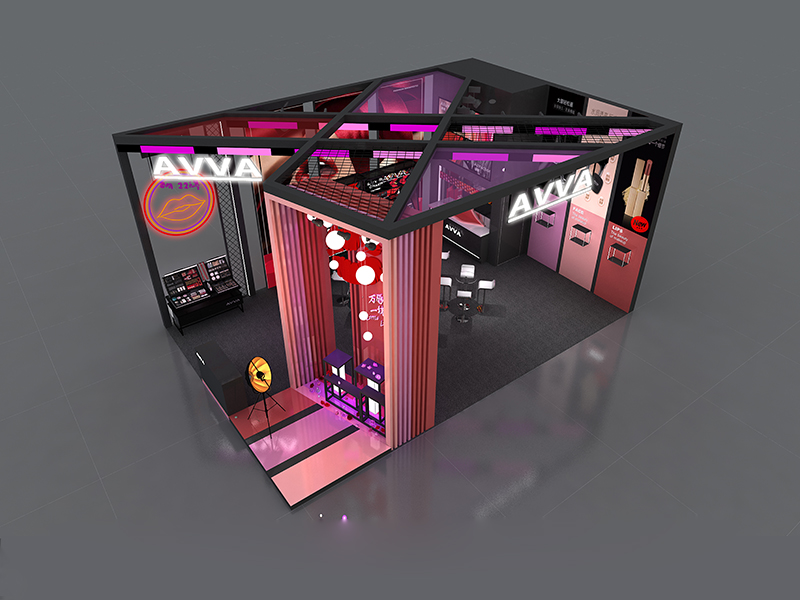 艾微——美博會(huì)設(shè)計(jì)搭建,契合艾微品牌形象和產(chǎn)品特性,采用粉、紫和黑為主色調(diào),再搭配燈具燈光的效果,襯托出展位潮流,精致的氛圍,突出參展商的企業(yè)品牌和產(chǎn)品個(gè)性。