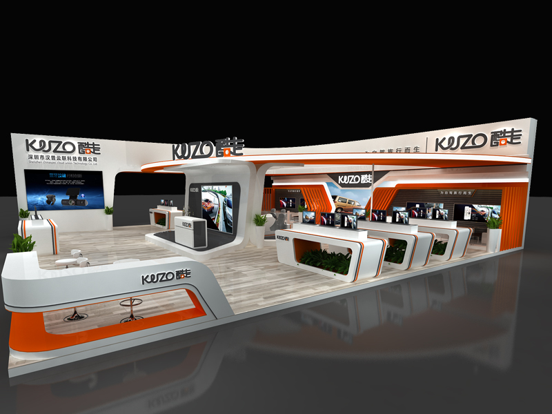 漢普云聯(lián)——汽車配件展設計搭建,契合漢普云聯(lián)的品牌形象和產(chǎn)品特性,顏色的搭配和簡潔的框架結構相結合,使整個展位線條硬朗又低調奢華,襯托出一種冷淡、科技的氛圍。