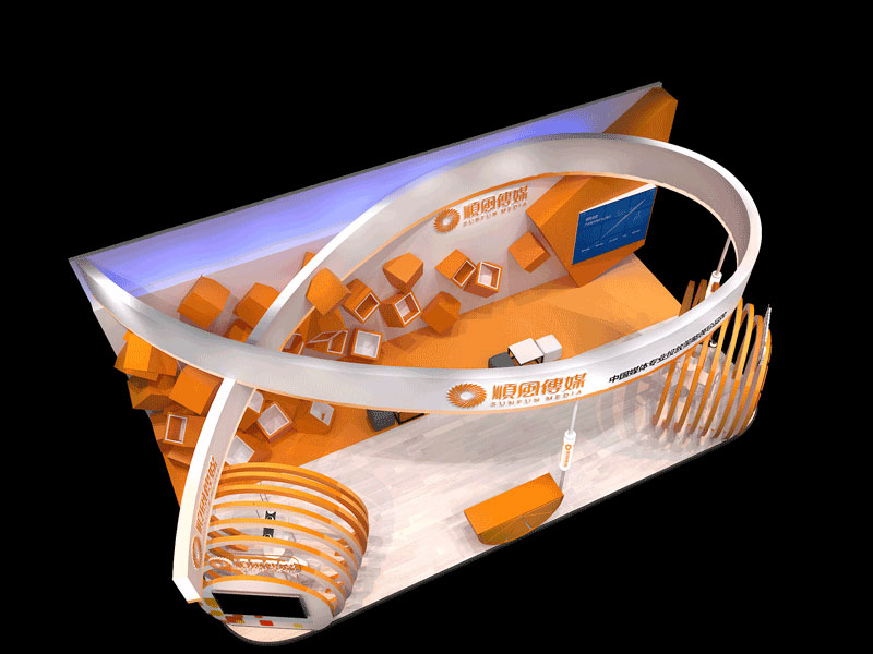 順風傳媒——廣告展設(shè)計搭建,契合順風傳媒品牌形象和產(chǎn)品特性,采用立體的搭建結(jié)構(gòu),打造了一個開放式的洽談區(qū),再搭配燈具燈光的效果,襯托出展位簡潔大方、活力時尚的氛圍。