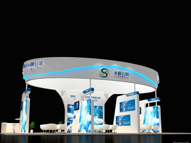 太極云軟的品牌形象和產(chǎn)品特性,運用白色的顏色主題色,再搭配燈光的效果,襯托出展位簡潔,科技的感覺,給人一種現(xiàn)代簡約的氛圍感。