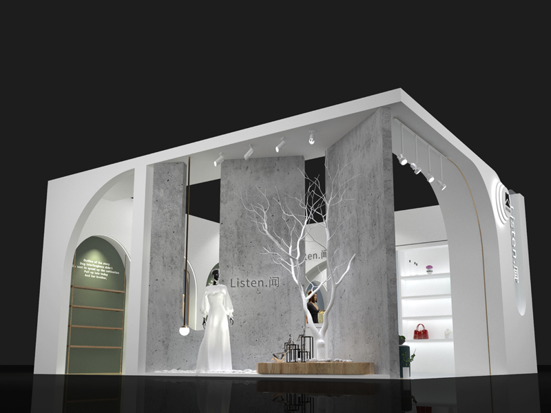 樂享制衣——服裝展設計搭建,契合品牌形象和產(chǎn)品特性,展位設計簡潔、前衛(wèi),突出一種獨特、個性的時尚品味。