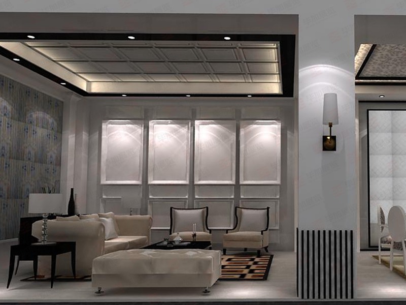 契合君瀾品牌形象和產(chǎn)品特性,采用立體結(jié)構(gòu),再搭配燈具燈光的效果,襯托出展位莊重、舒適的氛圍,突出一種后現(xiàn)代、金屬的時(shí)尚品味。